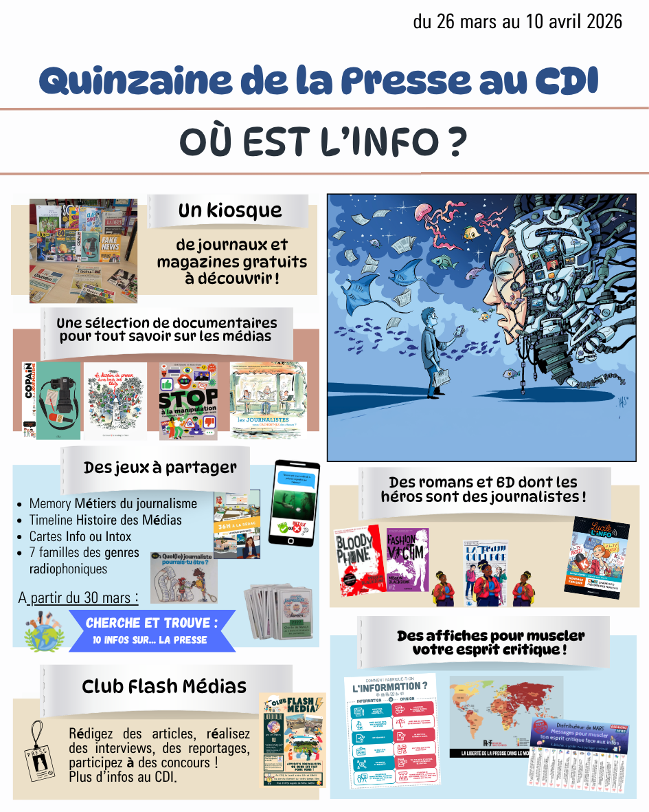 Du 26 mars au 10 avril, venez découvrir au CDI :