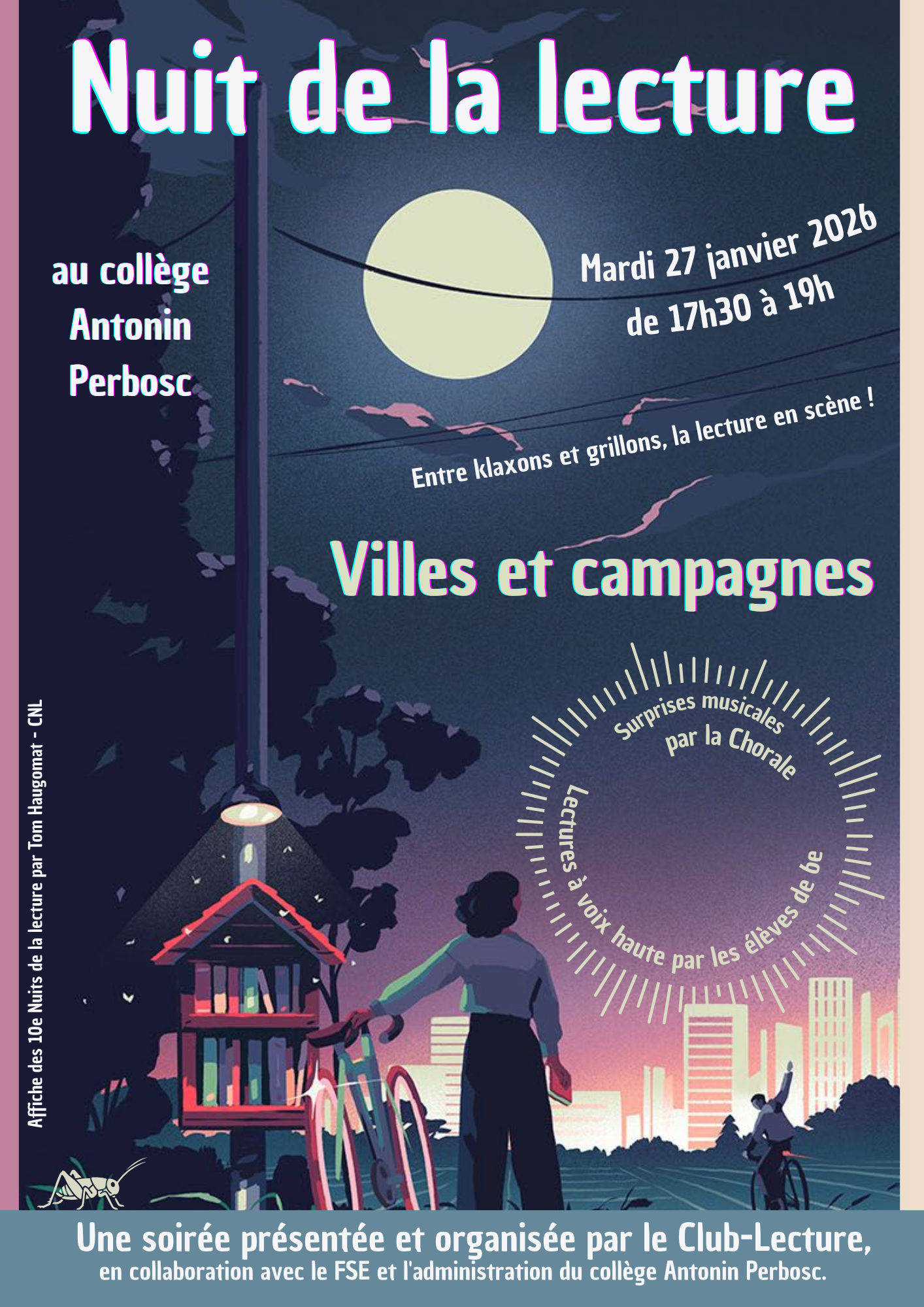 Le mardi 27 janvier, de 17h30 à 19h, le collège Antonin Perbosc a ouvert ses portes pour célébrer les Nuits de la lecture, placées cette année sous le signe des « Villes et campagnes ». Pour la quatrième année consécutive, l'établissement s’est associé à l’événement national porté par le Centre national du livre et le ministère de la Culture.